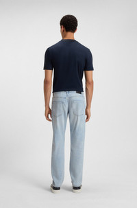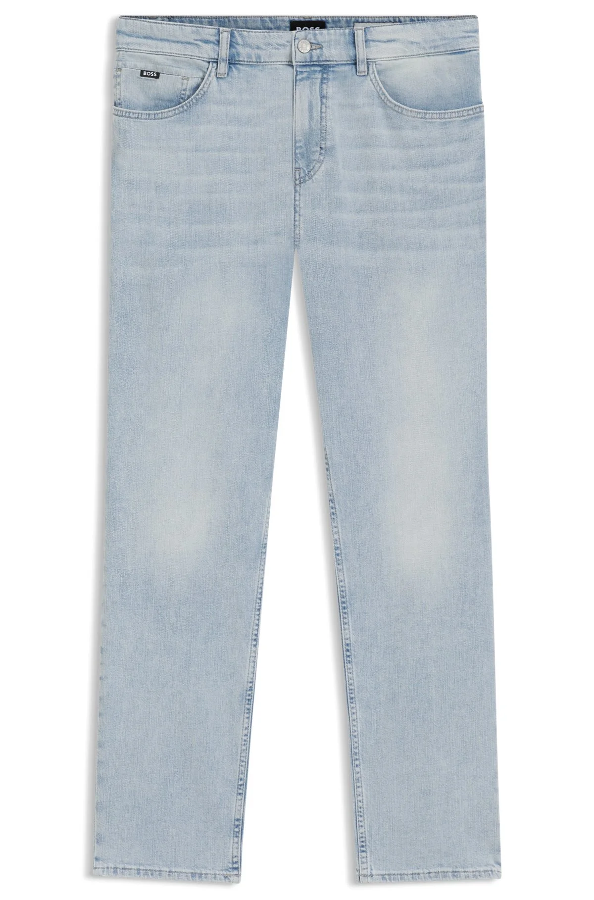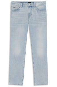 SIZE AND FIT The model wears a size 32/32 and is 6'1" tall with a, 37" chest, 29" waist and 35" hips. DETAILS H-Re.Maine - 50538547 In a summery blue, these BOSS Menswear jeans are so easy to style. Straight fit with a tapered leg in denim with stretch for comfort. Regular fit Regular rise Button and zip closure Pockets bottom front: Side pockets Tapered leg Pockets bottom back: Patch pocket Standard length QUALITY & CARE INSTRUCTIONS Do Not Dry Clean Iron Medium Heat Quality: 100% Cotton Do Not Bleach Machine Wash Cold Gentle Do Not Tumble Dry