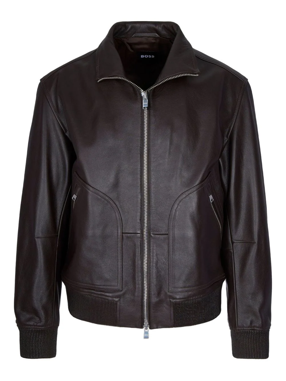 Mander leather jacket Highlights - Brown - Zip fastening - Ribbed trims - Zip pockets Imported Composition Outer: Calf Leather 100% Lining: Polyester 54%, Viscose 46% Washing instructions Specialist Cleaning