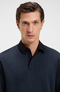 SIZE AND FIT The model wears a size L and is 6'1" tall with a, 36" chest, 29" waist and 37" hips. DETAILS H-Pado 432 - 50544254 The rich structure of this BOSS Menswear polo shirt is offset by the plain collar. Straight fit with concealed closure. Extra-soft mercerized cotton. Regular fit Neckline: Polo collar Number of buttons: 2 Long sleeves Ribbed cuffs Side slit QUALITY & CARE INSTRUCTIONS Do Not Tumble Dry Machine Wash Cold Gentle Quality: 100% Cotton Reduced Dry Clean Iron Low Heat Do Not Bleach