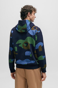 MERCERISED-COTTON REGULAR-FIT HOODIE WITH SEASONAL PATTERN