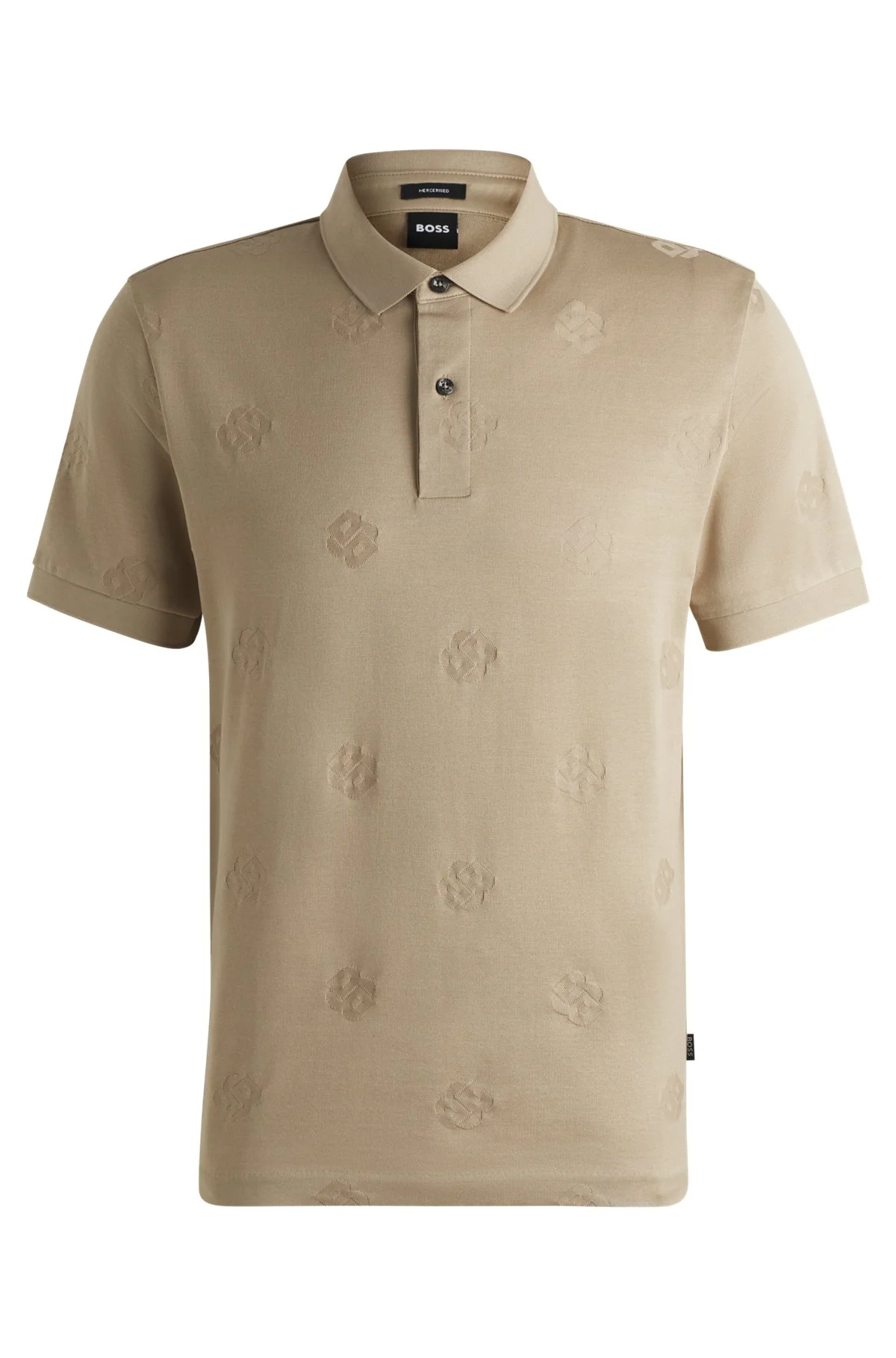 SIZE AND FIT The model wears a size M and is 6'2" tall with a, 37" chest, 33" waist and 35" hips. DETAILS C-Prout 109 - 50532765 A super-soft polo shirt by BOSS Menswear. Patterned all over with Double B monograms in a tonal effect, this polo shirt is crafted in cotton that's been mercerized for extra softness. The regular fit delivers a casual silhouette. Regular fit Number of buttons: 2 Short sleeves Standard length QUALITY & CARE INSTRUCTIONS Quality: 100% Cotton Do Not Tumble Dry Do Not Bleach Machine Wash Cold Gentle Iron Low Heat Reduced Dry Clean