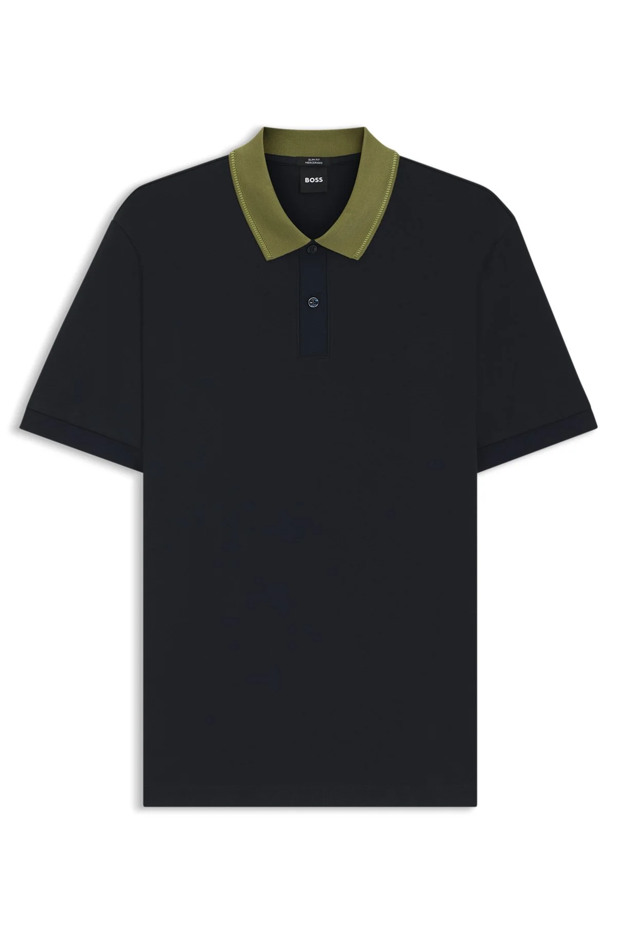 SIZE AND FIT The model wears a size M and is 6'1" tall with a, 36" chest, 29" waist and 37" hips. DETAILS H-Phillipson 199 - 50531791 A polo shirt cut to a slim fit by BOSS Menswear. Crafted in cotton that has been mercerized to increase its softness and luster, this short-sleeved polo shirt has a block stripe on the collar. Side slits and a logo flag round off this piece. Slim fit Neckline: Polo collar Number of buttons: 2 Short sleeves Flat-knit cuffs Standard length QUALITY & CARE INSTRUCTIONS Machine Wash Cold Gentle Iron Low Heat Quality: 100% Cotton Do Not Bleach Reduced Dry Clean Do Not Tumble Dry