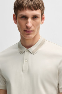 MERCERIZED-COTTON SLIM-FIT POLO SHIRT WITH COLLAR STRIPE