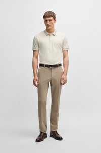 DETAILS H-Phillipson 199 - 50531791 A polo shirt cut to a slim fit by BOSS Menswear. Crafted in cotton that has been mercerized to increase its softness and luster, this short-sleeved polo shirt has a block stripe on the collar. Side slits and a logo flag round off this piece. Slim fit Neckline: Polo collar Number of buttons: 2 Short sleeves Flat-knit cuffs Standard length QUALITY & CARE INSTRUCTIONS Iron Low Heat Machine Wash Cold Gentle Quality: 100% Cotton Reduced Dry Clean Do Not Bleach Do Not Tumble Dry