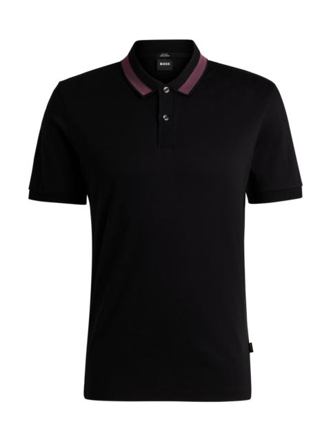 MERCERIZED-COTTON SLIM-FIT T-SHIRT WITH COLLAR STRIPE