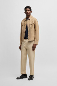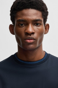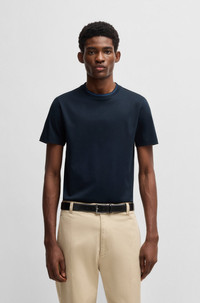 SIZE AND FIT The model wears a size M and is 6'2" tall with a, 37" chest, 33" waist and 35" hips. DETAILS H-Tessler 199 - 50531793 A slim-fit T-shirt by BOSS Menswear. Crafted in softened cotton, this top has a contrast stripe. A versatile piece to elevate weekend wear. Slim fit Neckline: Crew neck Short sleeves Standard length QUALITY & CARE INSTRUCTIONS Iron Low Heat Machine Wash Cold Gentle Quality: 100% Cotton Reduced Dry Clean Do Not Bleach Do Not Tumble Dry