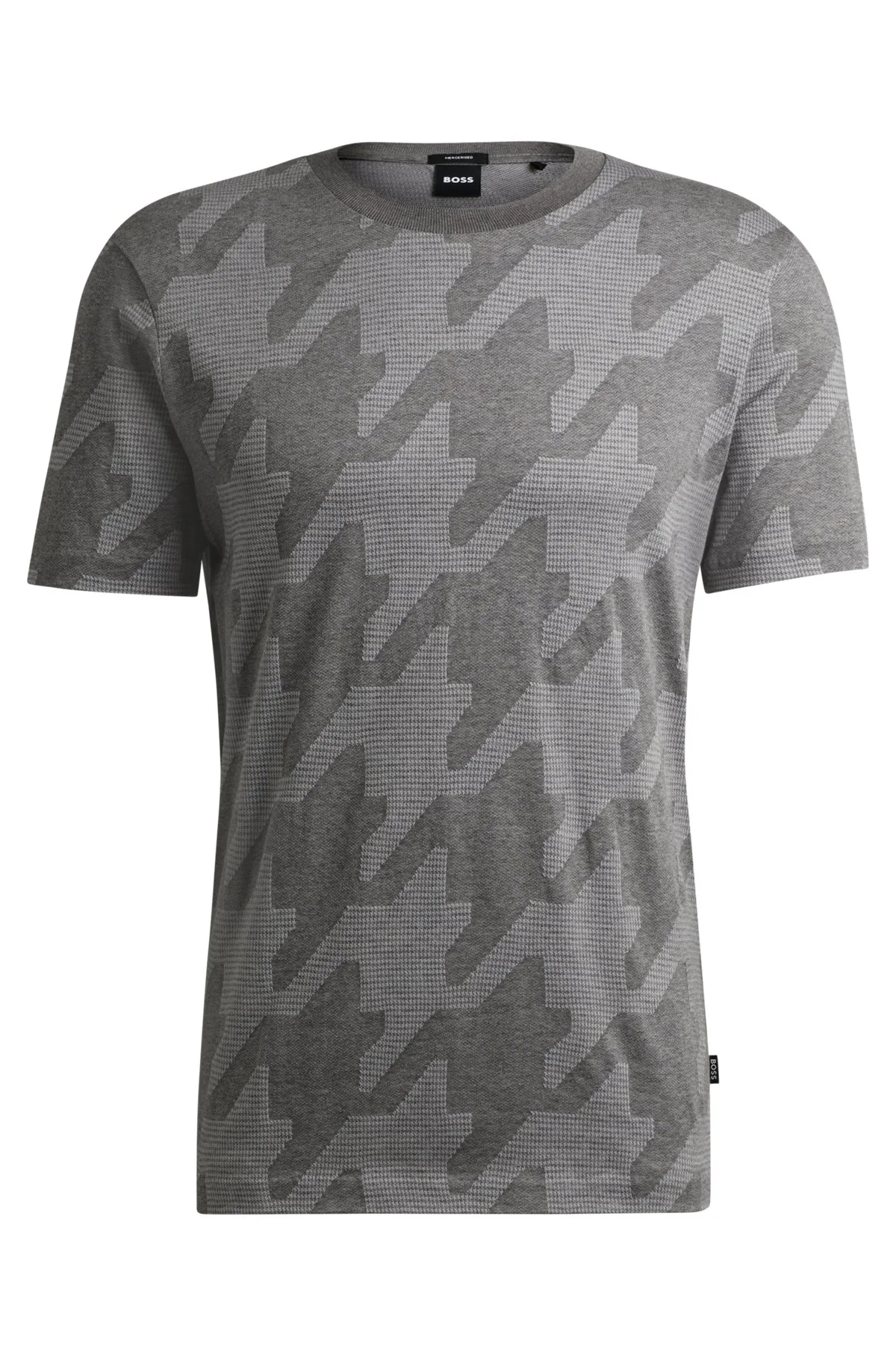 MERCERIZED-COTTON T-SHIRT WITH HOUNDSTOOTH JACQUARD