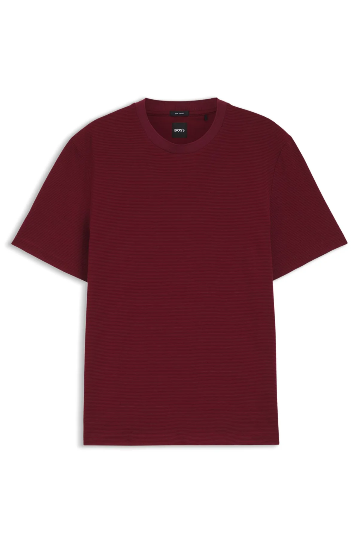 DETAILS Crafted in mercerized cotton with increased softness, this BOSS Menswear T-shirt elevates your basics. Straight fit. Three-tone micro pattern with solid collar. Regular fit Neckline: Crew neck Short sleeves Standard length H-Thompson 432 - 50534030 QUALITY & CARE INSTRUCTIONS Do Not Bleach Material: 100% Cotton Do Not Tumble Dry Machine Wash Cold Gentle Iron Low Heat Reduced Dry Clean