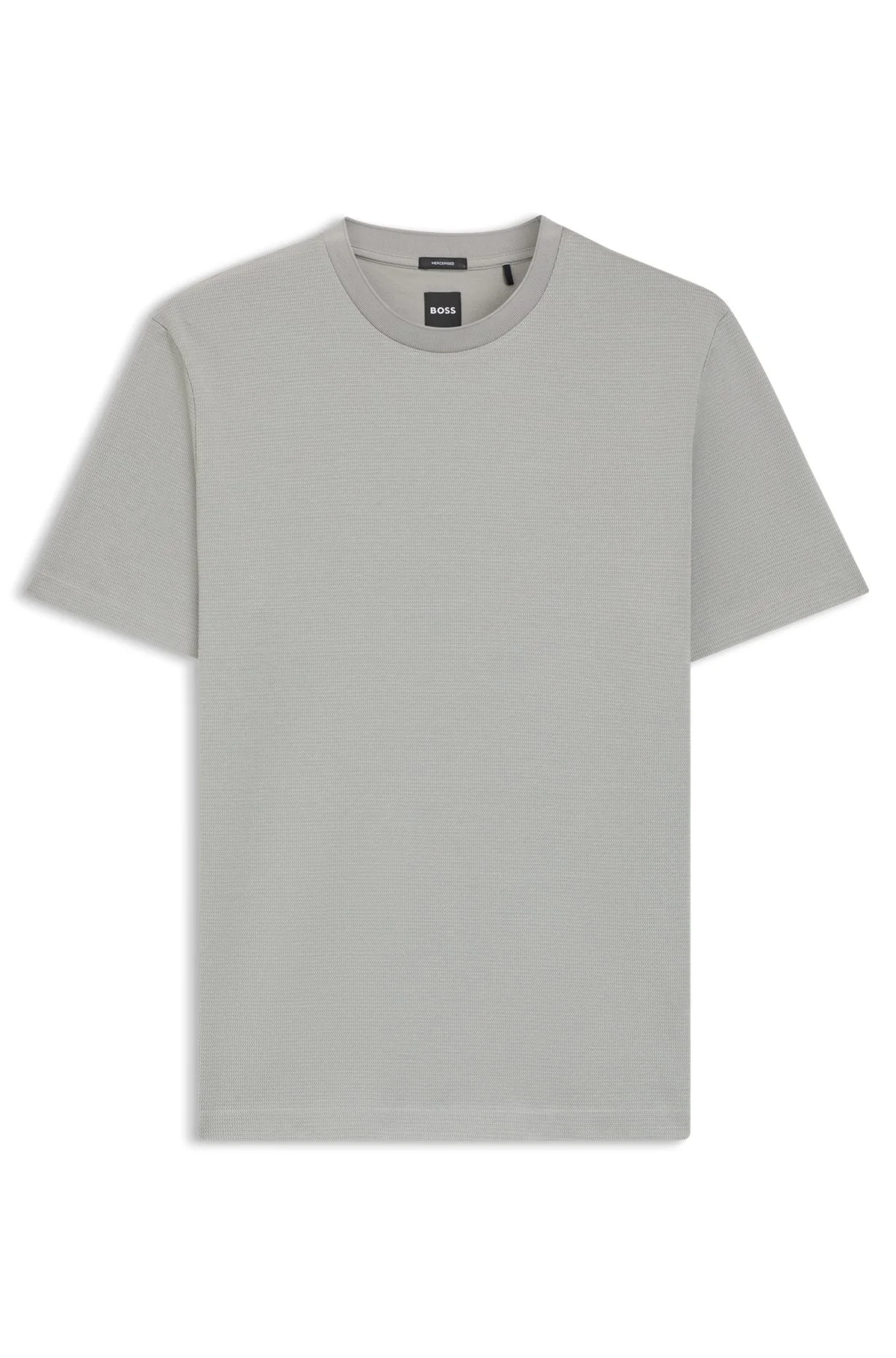 DETAILS H-Thompson 432 - 50534030 Crafted in mercerized cotton with increased softness, this BOSS Menswear T-shirt elevates your basics. Straight fit. Three-tone micro pattern with solid collar. Regular fit Neckline: Crew neck Short sleeves Standard length QUALITY & CARE INSTRUCTIONS Do Not Tumble Dry Machine Wash Cold Gentle Quality: 100% Cotton Reduced Dry Clean Iron Low Heat Do Not Bleach