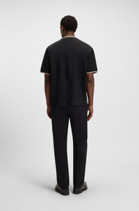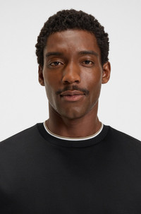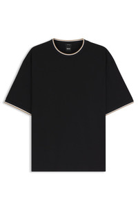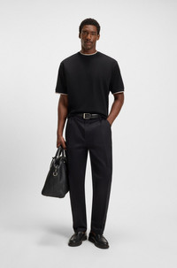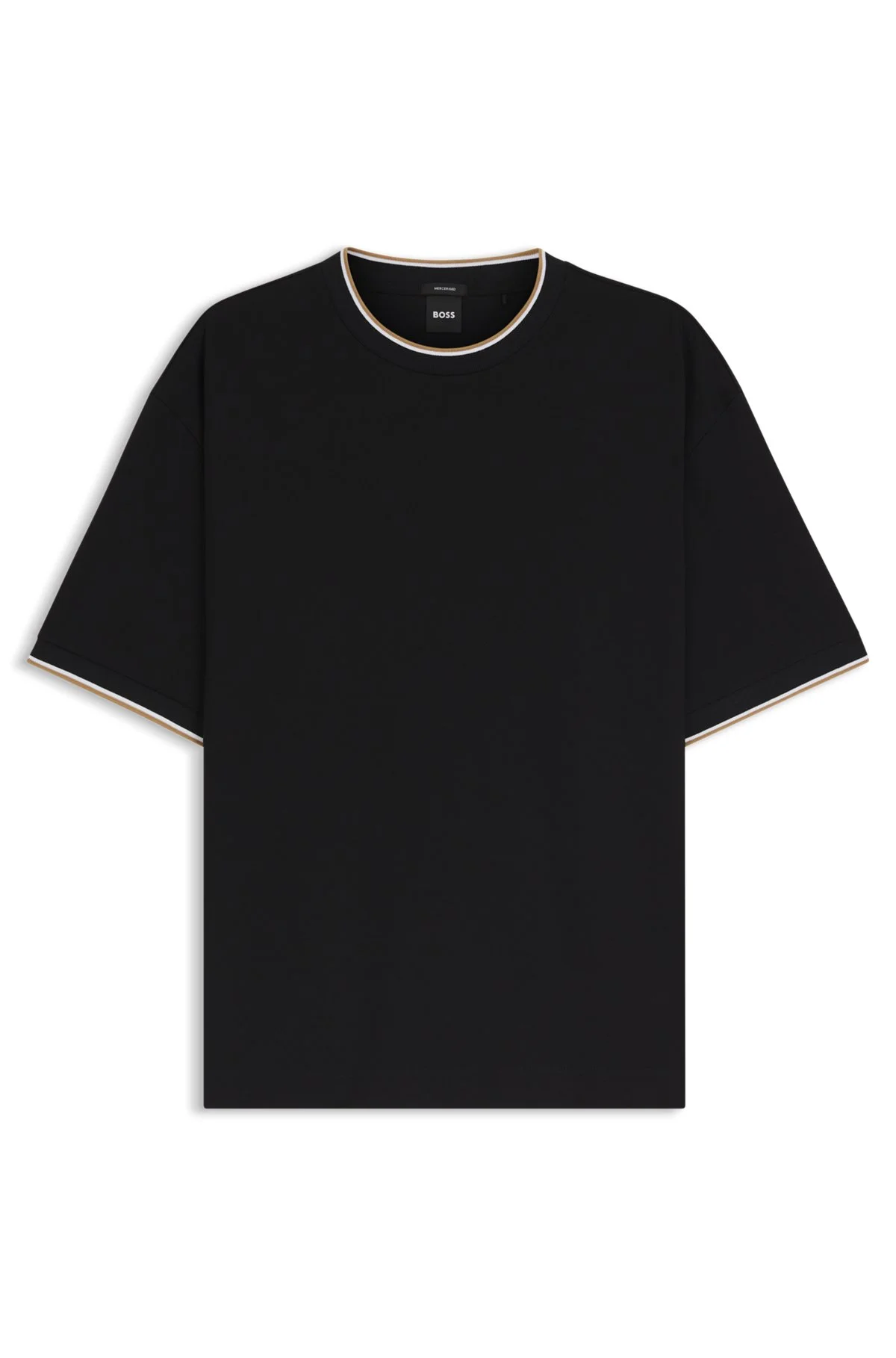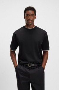 SIZE AND FIT The model wears a size M and is 6'1" tall with a, 36" chest, 29" waist and 37" hips. DETAILS H-Tames 65 - 50548012 In cotton that has been mercerized to enrich its natural softness, this relaxed BOSS Menswear T-shirt is a modern casual option. Sporty cuff stripes. Relaxed fit Neckline: Crew neck Short sleeves QUALITY & CARE INSTRUCTIONS Do Not Tumble Dry Machine Wash Cold Gentle Quality: 100% Cotton Iron Low Heat Do Not Bleach Do Not Dry Clean