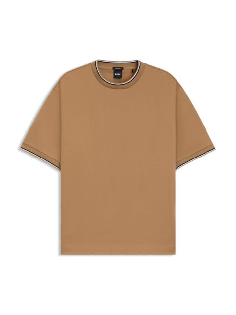 MERCERIZED-COTTON T-SHIRT WITH STRIPED CUFFS