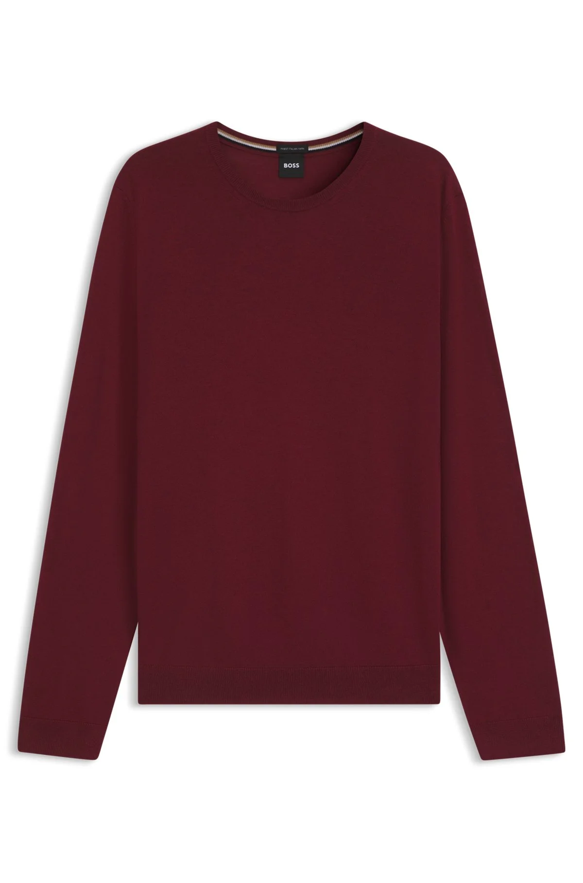 SIZE AND FIT The model wears a size L and is 6'1" tall with a, 36" chest, 29" waist and 37" hips. DETAILS A soft and breathable sweater by BOSS Menswear. Cut to a slim fit, this crew-neck layer is crafted in merino wool. Neckline: Crew neck Long sleeves Standard length Leno-P - 50468239 QUALITY & CARE INSTRUCTIONS Do Not Tumble Dry Do Not Bleach Cold, gentle machine wash; reduced spin speed. Iron Medium Heat Material: 100% Virgin wool Dry Clean Only