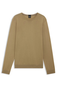 SIZE AND FIT The model wears a size M and is 6'1" tall with a, 36" chest, 29" waist and 36" hips. DETAILS A soft and breathable sweater by BOSS Menswear. Cut to a slim fit, this crew-neck layer is crafted in merino wool. Neckline: Crew neck Long sleeves Standard length Leno-P - 50468239 QUALITY & CARE INSTRUCTIONS Cold, gentle machine wash; reduced spin speed. Do Not Bleach Do Not Tumble Dry Dry Clean Only Iron Medium Heat Material: 100% Virgin wool