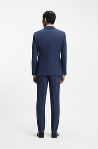 SIZE AND FIT The model wears a size 38R and is 6'1" tall with a, 36" chest, 29" waist and 36" hips. DETAILS Give your formal rotation some fresh input with this two-piece BOSS Menswear suit. Tailored to a modern streamlined fit, this suit is crafted in performance-stretch cloth with virgin wool for easy movement with a rich look. Constructed shoulders and notch lapels underline the contemporary cut. Slim fit Notched lapels Fastening top: Button closure Number of buttons: 2 Welt chest pockets Pockets top: Flap pockets Kissing buttons on the cuff Fully lined Hook and zip closure Pockets bottom front: Side slash pockets Pockets bottom back: Jetted pockets H-Huge-2Pcs-253 - 50557252 QUALITY & CARE INSTRUCTIONS Material: 54% Polyester, 44% Virgin wool, 2% Elastane, Lining: 95% Polyester, 5% Elastane, Sleeve lining: 100% Viscose, knee lining: 100% Viscose Do Not Bleach Do Not Wash Iron Low Heat Reduced Dry Clean Do Not Tumble Dry