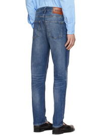 Tapered and straight-leg stretch selvedge denim jeans. Fading and whiskering throughout. · Belt loops · Five-pocket styling · Zip fly · Logo patch at back waistband · Logo hardware at back pocket Supplier color: Blue 99% cotton, 1% elastane. Made in Pakistan 252085M186004