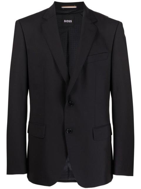 notched-lapels single-breasted blazer Highlights - Navy blue - Virgin wool blend - Stretch-design - Notched lapels - Front button fastening - Long sleeves - Buttoned cuffs - Chest welt pocket - Two front flap pockets - Straight hem Imported Composition Virgin Wool 95%, Elastane 5% Lining: Viscose 65%, Polyester 35% SIZE & FIT Model measurements Height 6 ft 2 in(1.87 m) Bust/Chest 34.25 in(87 cm) Hips 36.22 in(92 cm) Waist 29.52 in(75 cm) FittingInformation Designed for a slim fit, offering a comfortable fit that sits just away from the body The internal shoulder pads offer a structured shape Made from a midweight non-stretch fabric This piece fits true to size – take your usual size Washing instructions Dry Clean Only