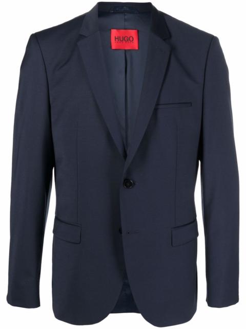 notched-lapels single-breasted blazer Highlights - Charcoal grey - Virgin wool blend - Interlock twill weave - Notched lapels - Front button fastening - Shoulder pads - Long sleeves - Buttoned cuffs - Jetted chest pocket - Two front flap pockets - English rear vents - Straight hem - Full lining Imported Composition Body: Virgin Wool 74%, Polyester 22%, Elastane 4% Lining: Polyester 95%, Elastane 5% SIZE & FIT Model measurements Height 6 ft 2 in(1.87 m) Bust/Chest 36.41 in(92.5 cm) Hips 37 in(94 cm) Waist 29.52 in(75 cm) FittingInformation Designed for a slim fit, offering a comfortable fit that sits just away from the body The vented hem offers movement at the rear Made from a midweight stretch fabric, this piece offers elasticity and flexibility when worn This piece fits true to size – take your usual size Washing instructions Dry Clean Only