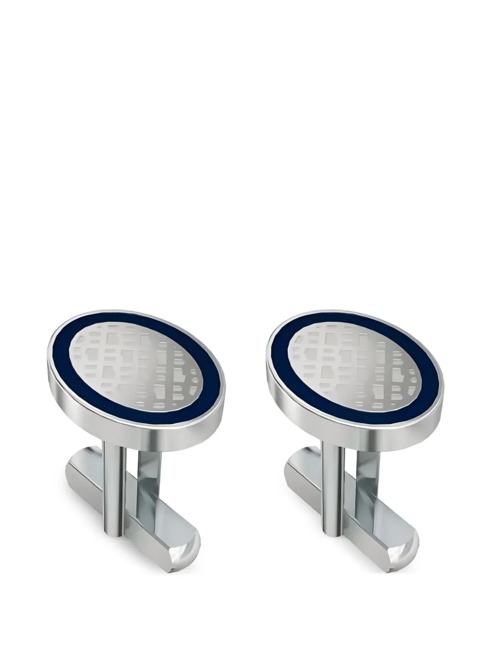 oval-shape cufflinks Highlights - Silver-tone - Navy blue - Oval shape - Grid pattern - T-bar fastening Imported Composition Brass 100%