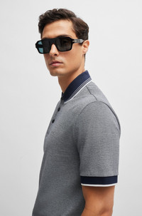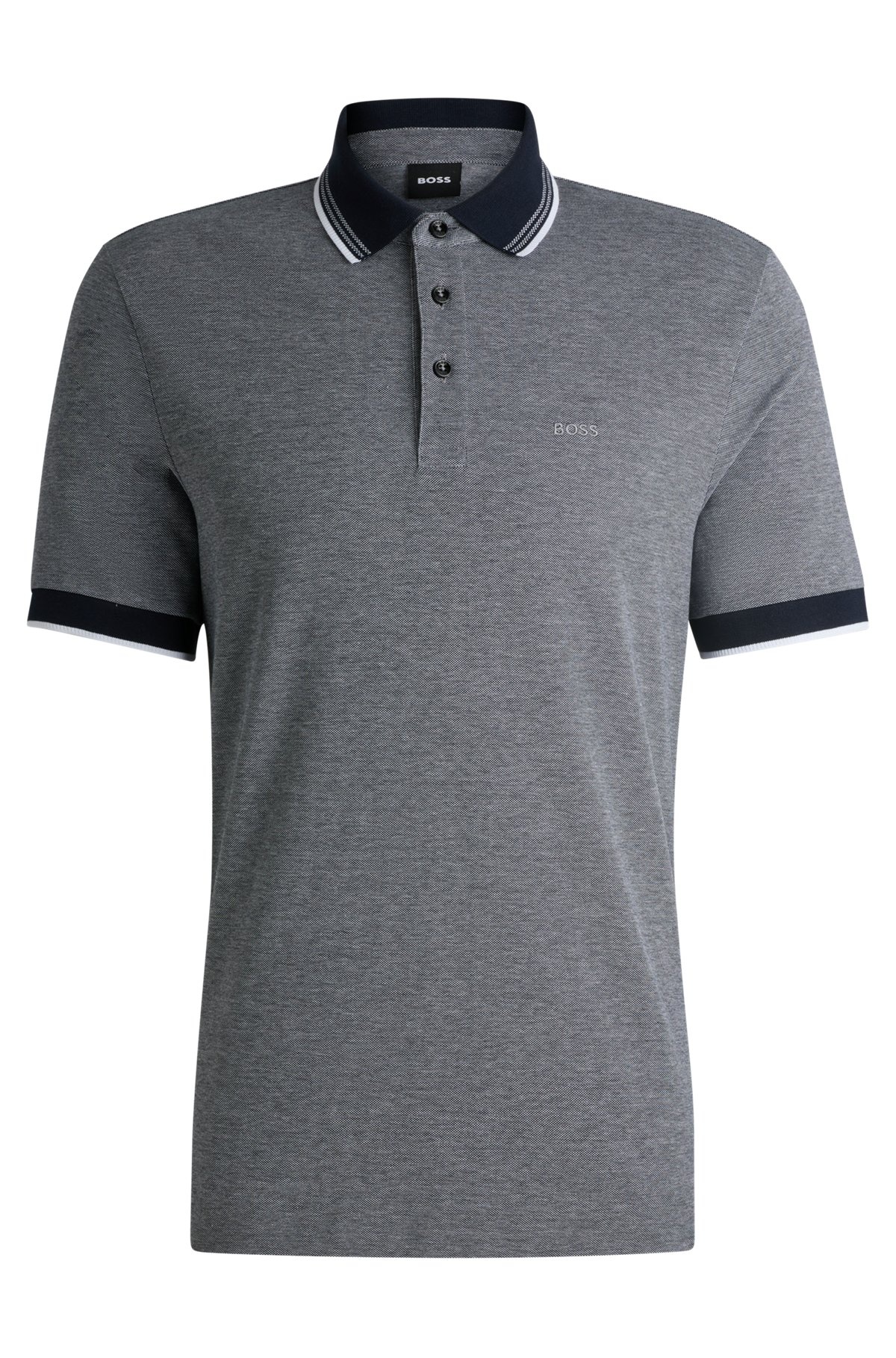 SIZE AND FIT The model wears a size M and is 0'0" tall with a, 0" chest, 0" waist and 0" hips. DETAILS H-Prout 141 - 50521116 A refined polo shirt in a regular fit by BOSS Menswear. Crafted in breathable Oxford pique, this top is detailed with branding and tipping stripes. Regular fit Number of buttons: 3 Short sleeves Flat-knit cuffs Standard length QUALITY & CARE INSTRUCTIONS Do Not Dry Clean Iron Low Heat Do Not Bleach Do Not Tumble Dry Quality: 100% Cotton Machine Wash Cold Gentle