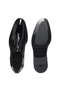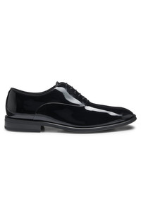DETAILS Crafted in Italy from synthetic coated fabric with a patent finish, these BOSS Menswear shoes are perfect for evening events. Classic Oxford styling. Synthetic coated fabric, sometimes referred to as faux leather, is a fabric designed to resemble real leather, and/or display a matte, glossy, smooth, or textured, coated appearance. Sole: Leather/other material Fully lined Laces Packaging: Box Derrek_Oxfr_pagg - 50549654 QUALITY & CARE INSTRUCTIONS Upper material: 58% Polyurethane, 26% Polystyrene, 16% Polyamid, Lining: 100% Yak, Sole: 90% Thermoplastic polyurethane , 10% Leather, Innersole: 100% Yak