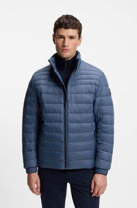 DETAILS Packable for on-the-go protection, this slim-fit BOSS Menswear jacket is a trans-seasonal must. Water repellent with mixed quilting and lightweight padding. Slim fit Standard length Fit back length: 70 cm (28 inches) Oden2 - 50549252 QUALITY & CARE INSTRUCTIONS Iron Low Heat Do Not Tumble Dry Material: 100% Polyamide, Filling: 100% Polyester, Body Lining: 100% Polyamid very mild professional wet clean Do Not Bleach Do Not Wash Do Not Dry Clean