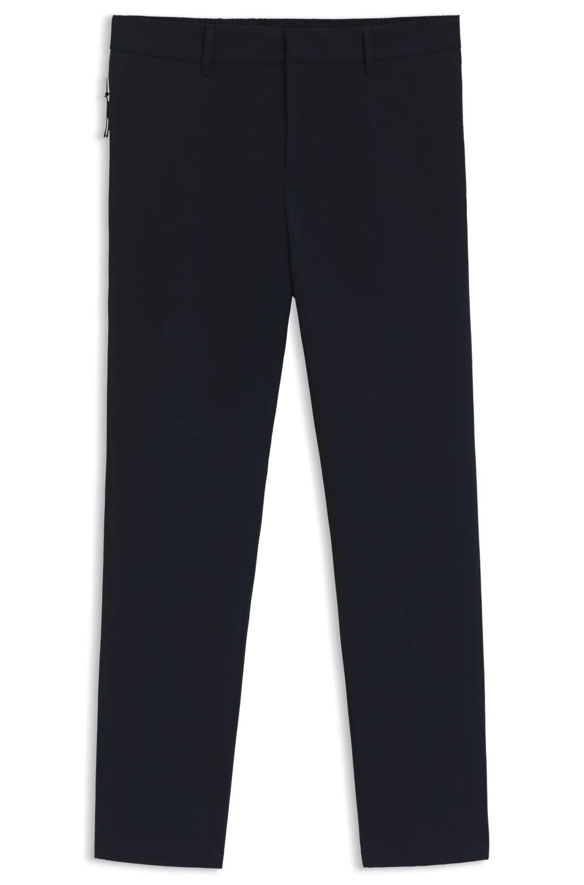 SIZE AND FIT The model wears a size 32R and is 6'1" tall with a, 36" chest, 29" waist and 36" hips. DETAILS P-Genius-WG-PK-253F - 50543570 With generous stretch and a packable function, these slim-fitting BOSS Menswear trousers are ideal for business travel. Water repellent and machine washable. Slim fit Hook and zip closure Pockets bottom front: Side zip pocket Pockets bottom back: Welt pocket Partially lined QUALITY & CARE INSTRUCTIONS Machine Wash Cold Gentle Do Not Bleach Quality: 85% Polyester, 15% Elastane, pocketing: 58% Polyamid, 42% Polyester Do Not Dry Clean Do Not Tumble Dry Do Not Iron