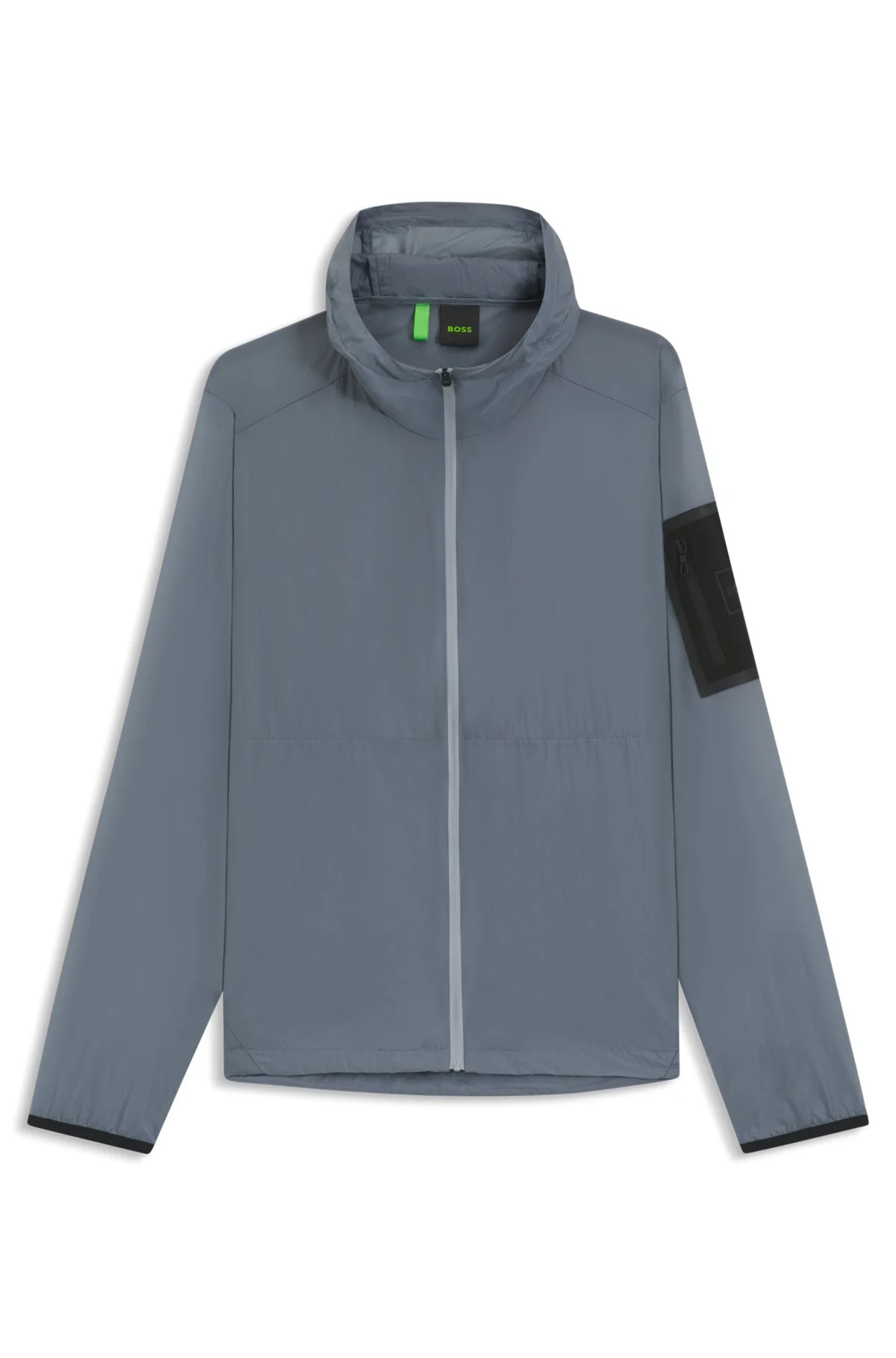 SIZE AND FIT The model wears a size M and is 6'2" tall with a, 36" chest, 31" waist and 38" hips. DETAILS J_Airynix Jacket HD - 50541879 Packable into the hood, this coated BOSS Menswear jacket is essential for on-the-go protection. Adjustable hem and hood. Elasticated cuffs. Secure zipped pockets. Fit back length: 70 cm (28 inches) QUALITY & CARE INSTRUCTIONS Do Not Dry Clean Do Not Tumble Dry Iron Low Heat Quality: 100% Polyamid Machine Wash Cold Gentle Do Not Bleach