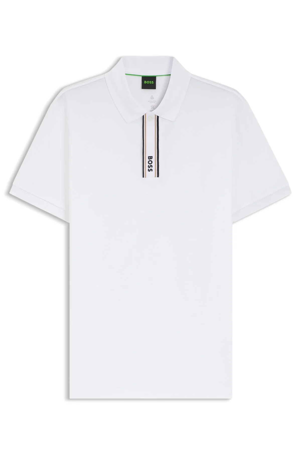 DETAILS Cut in cotton with moisture management and four-way stretch, this BOSS Menswear polo shirt offers active comfort. Straight fit. Stripe and logo on placket. Regular fit Neckline: Flat-knit collar Number of buttons: 3 Short sleeves Flat-knit cuffs Standard length PL_Paddy GOC - 50549362 QUALITY & CARE INSTRUCTIONS Iron Low Heat Do Not Bleach Machine Wash Cold Gentle Do Not Tumble Dry Do Not Dry Clean Material: 92% Cotton, 8% Elastane