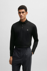 SIZE AND FIT The model wears a size M and is 6'2" tall with a, 37" chest, 29" waist and 37" hips. DETAILS C-Paley 01 - 50523917 A long-sleeved polo shirt by BOSS. Featuring a Double B monogram at the left chest, this polo shirt is cut to a regular fit in interlock material made from cotton. The fabric has a mercerized finish for increased softness. Regular fit Neckline: Flat-knit collar Number of buttons: 3 Long sleeves No cuffs Standard length QUALITY & CARE INSTRUCTIONS Reduced Dry Clean Iron Low Heat Do Not Bleach Do Not Tumble Dry Quality: 100% Cotton Machine Wash Cold Gentle