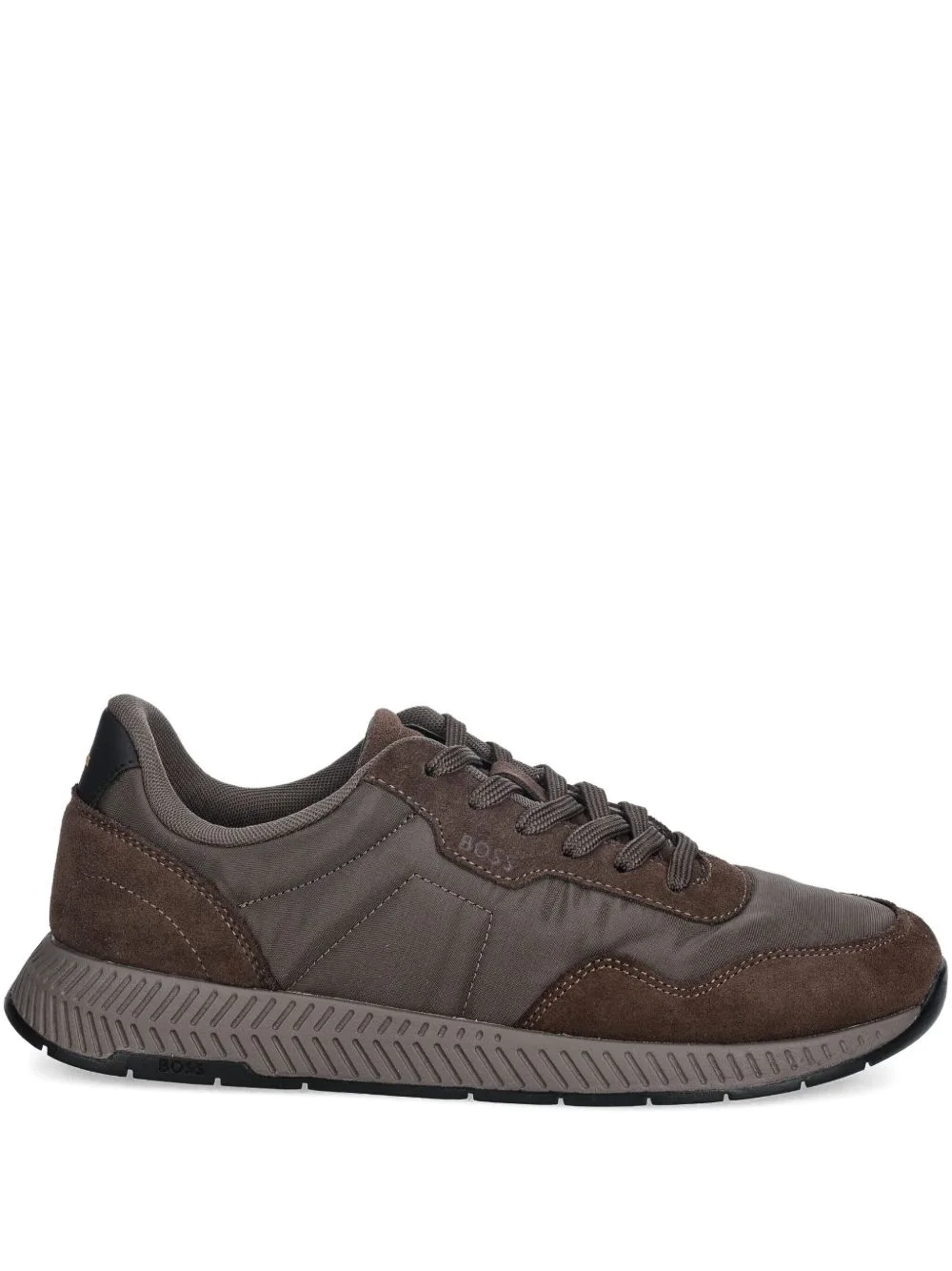 panelled lace-up sneakers Highlights - Brown - Panelled design - Lace-up fastening - Logo detail Imported Composition Outer: Polyester 100%, Suede 100% Lining: Polyester 100% Sole: Rubber 55%, Polyethylene vinyl acetate (PEVA) 45%