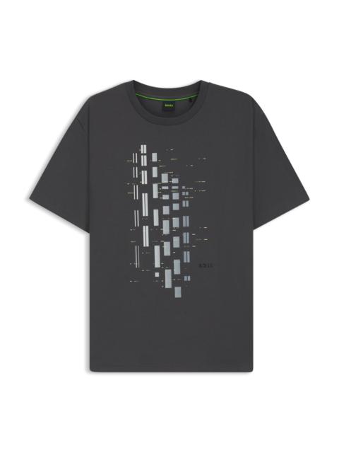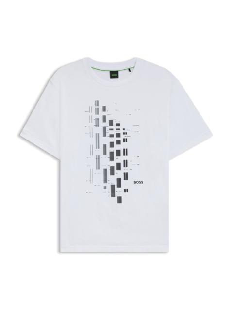 SIZE AND FIT The model wears a size M and is 6'2" tall with a, 36" chest, 31" waist and 38" hips. DETAILS Tee Check GL - 50543806 Cut to a loose fit, this BOSS Menswear T-shirt has creative golf artwork and a check print. Created in extra-soft cotton. Relaxed fit Neckline: Crew neck Short sleeves Standard length QUALITY & CARE INSTRUCTIONS Quality: 100% Cotton Do Not Tumble Dry Do Not Bleach Machine Wash Cold Gentle Iron Low Heat Do Not Dry Clean