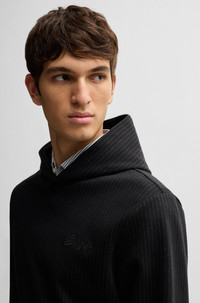 SIZE AND FIT The model wears a size M and is 6'2" tall with a, 37" chest, 30" waist and 37" hips. DETAILS C-Seeger 111 - 50531324 An easy-wear hoodie cut a regular fit by BOSS Menswear. This elevated design is crafted in a pinstripe cotton blend with a script logo. Regular fit Neckline: Hooded Long sleeves Standard length QUALITY & CARE INSTRUCTIONS Iron Low Heat Quality: 70% Cotton, 30% Polyester, Lining: 100% Cotton Machine Wash Cold Gentle Reduced Dry Clean Do Not Bleach Do Not Tumble Dry