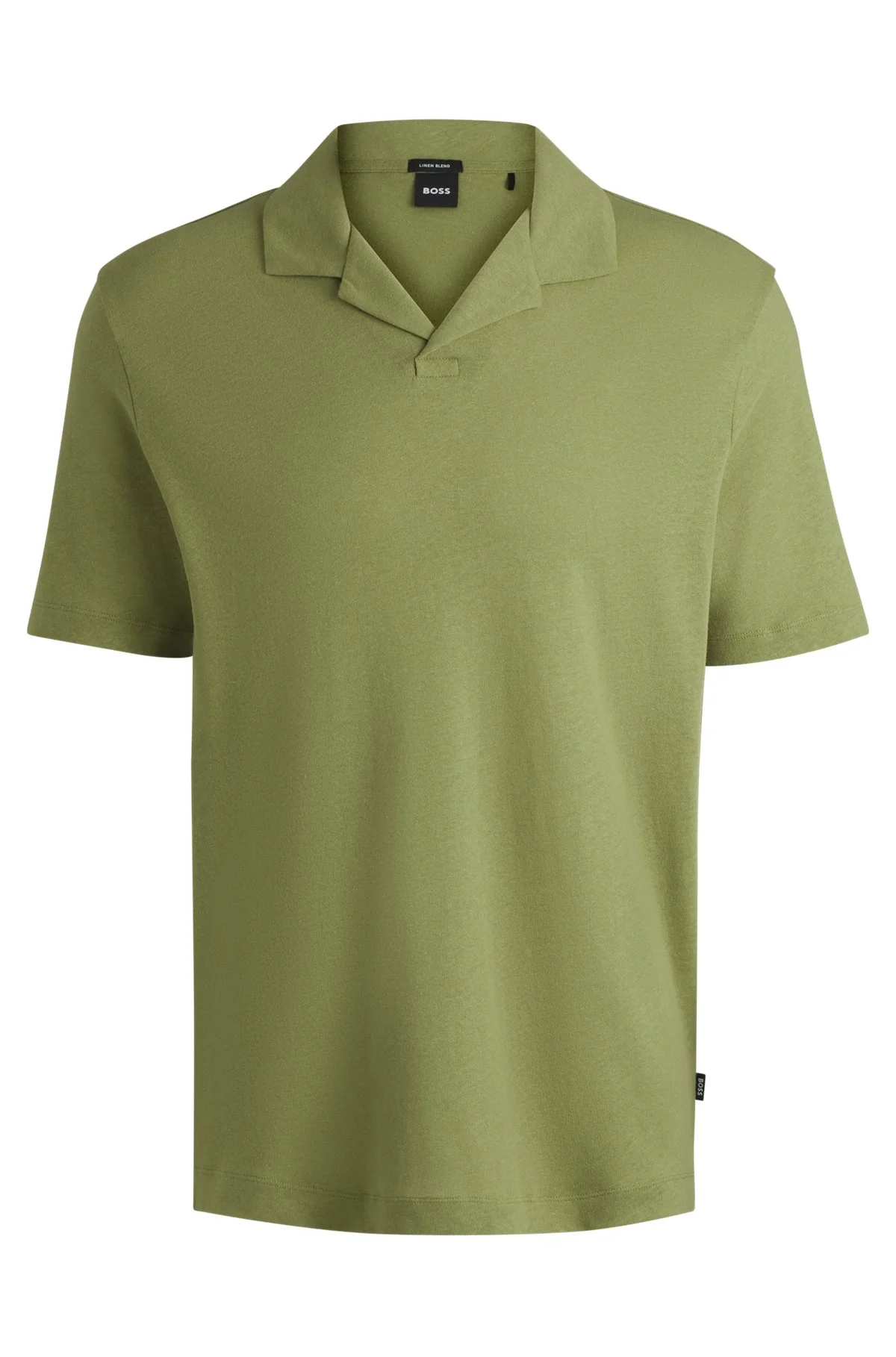 SIZE AND FIT The model wears a size M and is 6'1" tall with a, 33" chest, 24" waist and 36" hips. DETAILS H-Ponti 28 - 50537502 Refresh your sporty casuals with this BOSS Menswear polo shirt. Cut to a straight fit, this short-sleeved polo shirt is made in a blend of cotton and linen for a fresh and breathable feel. Topped with a Johnny collar for a clean finish. Regular fit Short sleeves Standard length QUALITY & CARE INSTRUCTIONS Do Not Tumble Dry Do Not Dry Clean Iron Low Heat Do Not Bleach Cold, gentle machine wash; reduced spin speed. Quality: 52% Cotton, 48% Linen