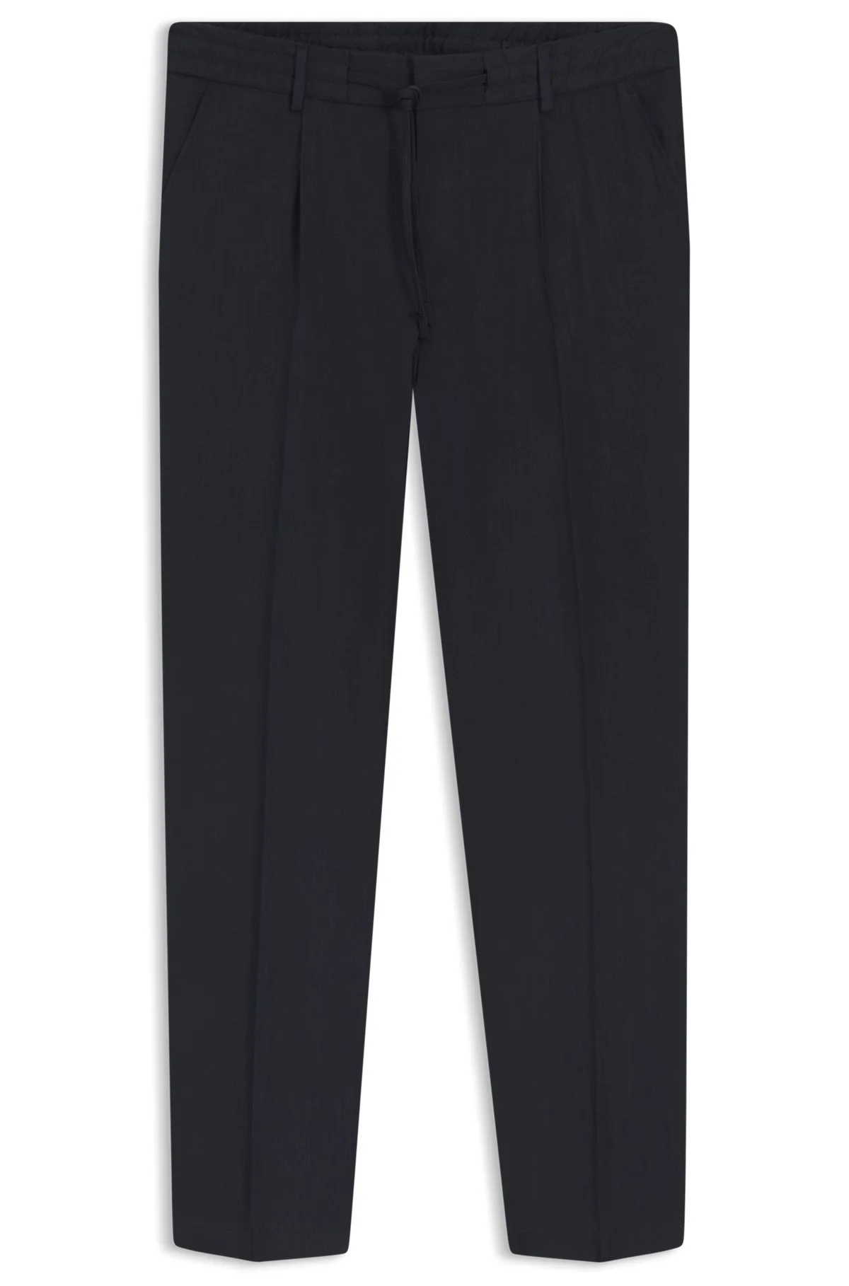 SIZE AND FIT The model wears a size 32R and is 6'1" tall with a, 32" chest, 28" waist and 34" hips. DETAILS P-Perin-RDS-PL-WG252 - 50540733 In a modern tapered fit with pleats, these BOSS Menswear trousers are a summer must. Linen blend with stretch for comfort in movement. From a curated edit of elevated off-field essentials, selected by baseball star Shohei Ohtani. Tapered fit Hook and zip closure Drawstring Pockets bottom front: French pocket Pockets bottom back: Jetted pockets Partially lined QUALITY & CARE INSTRUCTIONS Do Not Tumble Dry Reduced Dry Clean Do Not Bleach Cold, gentle machine wash; reduced spin speed. Iron Low Heat Quality: 66% Linen, 32% Viscose, 2% Elastane, pocketing: 65% Polyester, 35% Cotton