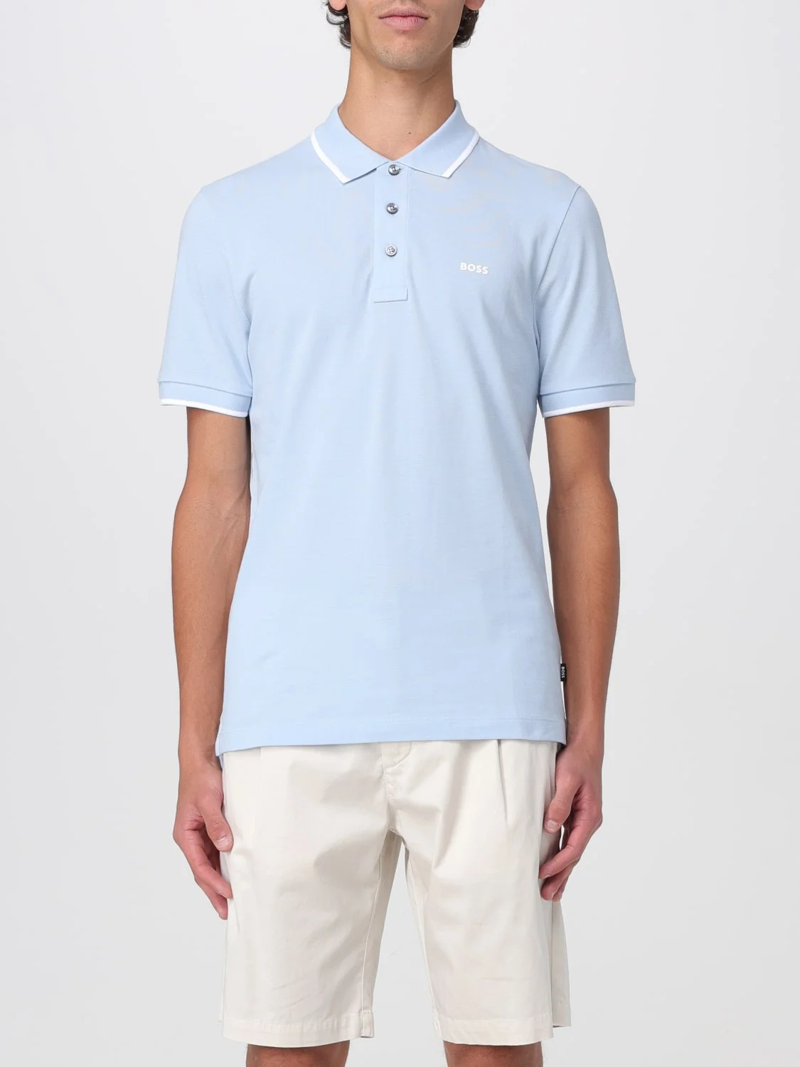 DESCRIPTION - Style: Casual - Logo: Contrasting - Neck: Classic - Shoulders: Regular - Sleeves: Short - Closure: With 3-button placket - Bottom: With straight hemline - Materials: Cotton - Pattern: Plain-colored DETAILS AND CARE Composition CO SIZE AND FIT Sizes not available Size and fit Regular fit Designer code: 50494697 450 Giglio Code: G78397 Designer: Boss Collection: Boss Men Category: Clothing Boss