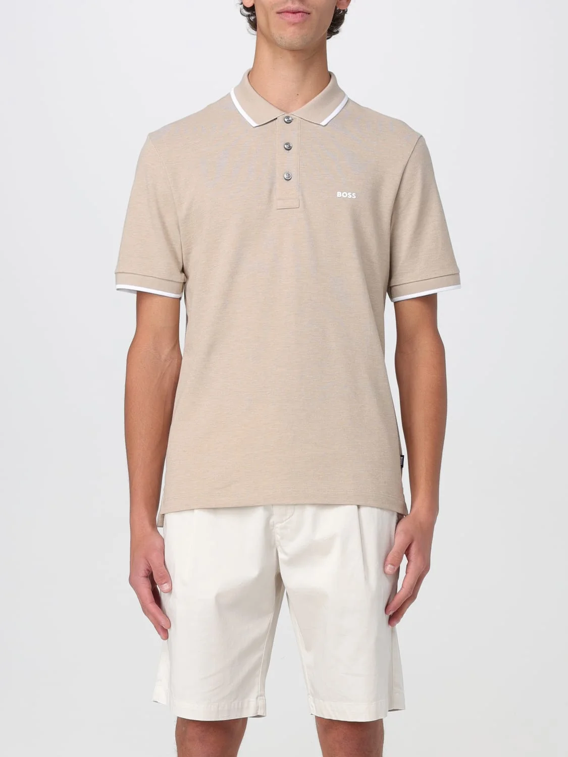 DESCRIPTION - Style: Casual - Logo: Contrasting - Neck: Classic - Shoulders: Regular - Sleeves: Short - Closure: With 3-button placket - Bottom: With straight hemline - Materials: Cotton - Pattern: Plain-colored DETAILS AND CARE Composition CO SIZE AND FIT Sizes not available Size and fit Regular fit Designer code: 50494697 290 Giglio Code: G78397 Designer: Boss Collection: Boss Men Category: Clothing Boss