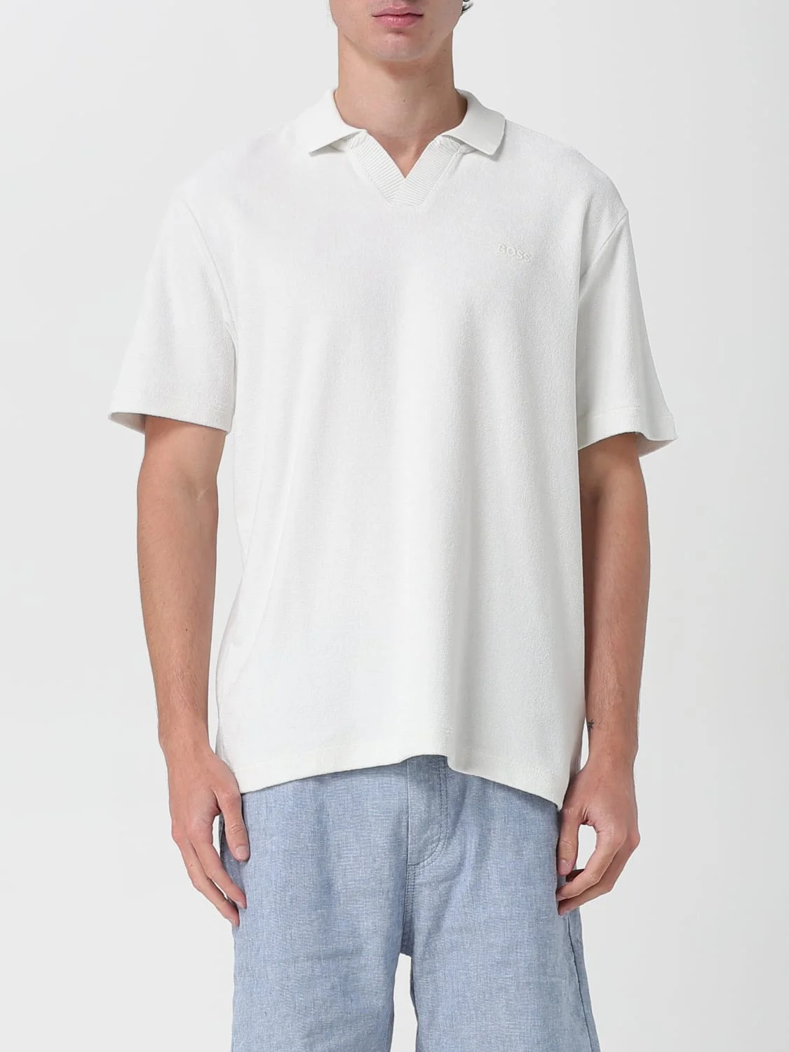 DESCRIPTION - Style: Casual - Logo: Embroidered - Neck: Classic - Shoulders: Regular - Sleeves: Short - Closure: With 2-button placket - Bottom: With straight hemline - Materials: Cotton - Pattern: Logo DETAILS AND CARE Composition coto SIZE AND FIT Sizes not available Size and fit Regular fit Designer code: 50506193 106 Giglio Code: G86432 Designer: Boss Collection: Boss Men Category: Clothing Boss