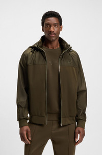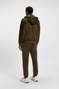 SIZE AND FIT The model wears a size L and is 6'1" tall with a, 36" chest, 29" waist and 37" hips. DETAILS C-Steele 71_PS - 50537366 In a mix of fabrics, this men's Porsche x BOSS hoodie has a two-way zip and tonal branding. Body fabric blended with mercerized cotton. Part of the Porsche x BOSS capsule, a collection of bold styles that captures the BOSS attitude of drive and determination. Regular fit Neckline: Hooded Long sleeves Ribbed cuffs Standard length QUALITY & CARE INSTRUCTIONS Do Not Tumble Dry Do Not Dry Clean Iron Low Heat Do Not Bleach Machine Wash Cold Gentle Quality: 53% Polyamid, 47% Cotton, Lining: 100% Polyester, Inner lining: 100% Cotton, Components: 100% Polyamid
