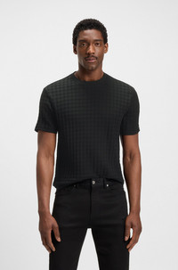 SIZE AND FIT The model wears a size M and is 6'1" tall with a, 36" chest, 29" waist and 37" hips. DETAILS C-Thompson 198_PS - 50545585 Crafted in mercerized cotton for an extra-soft feel, this Porsche x BOSS T-shirt is woven with a textured houndstooth jacquard. Regular fit Special trims. Part of the Porsche x BOSS capsule, a collection of bold styles that captures the BOSS attitude of drive and determination. Regular fit Neckline: Crew neck Short sleeves Standard length QUALITY & CARE INSTRUCTIONS Do Not Tumble Dry Machine Wash Cold Gentle Quality: 100% Cotton Reduced Dry Clean Iron Low Heat Do Not Bleach