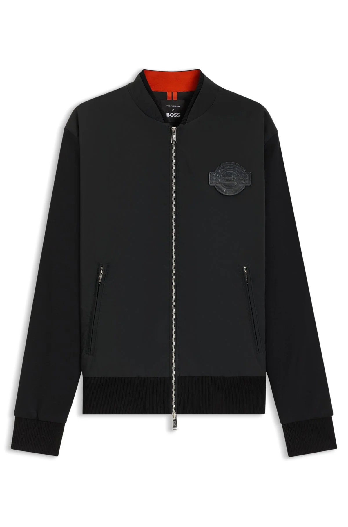 SIZE AND FIT The model wears a size M and is 6'1" tall with a, 36" chest, 29" waist and 37" hips. DETAILS C-Skiles 197_PS - 50543675 With trims inspired by the iconic Targa, this Porsche x BOSS men's jacket is a modern casual upgrade. Regular fit. Soft jersey. Part of the Porsche x BOSS capsule, a collection of bold styles that captures the BOSS attitude of drive and determination. Regular fit Long sleeves Standard length QUALITY & CARE INSTRUCTIONS Do Not Bleach Do Not Tumble Dry Do Not Dry Clean Quality: 80% Cotton, 20% Polyester, Lining: 100% Polyester, Components: 56% Polyester, 44% Elastomultiester, pocketing: 100% Cotton, Wadding: 100% Polyester Machine Wash Cold Gentle Iron Low Heat