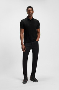 SIZE AND FIT The model wears a size M and is 6'1" tall with a, 36" chest, 29" waist and 37" hips. DETAILS C-Pack 197_PS - 50543666 This men's Porsche x BOSS polo shirt will elevate everyday casual looks. Crafted in extra-soft mercerized cotton with a houndstooth jacquard. Regular fit. Part of the Porsche x BOSS capsule, a collection of bold styles that captures the BOSS attitude of drive and determination. Regular fit Number of buttons: 3 Short sleeves Standard length QUALITY & CARE INSTRUCTIONS Do Not Tumble Dry Machine Wash Cold Gentle Reduced Dry Clean Iron Low Heat Quality: 100% Cotton Do Not Bleach