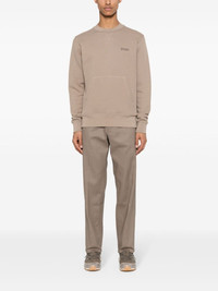 pressed-crease twill tapered trousers Highlights - Earth brown - Cotton blend - Twill weave - Belt loops at the waist - Two side slash pockets - Coin pocket - Pressed crease - Mini logo tag to the rear - Two rear welt pockets - Tapered leg - Front button and zip fastening Imported Composition Cotton 98%, Elastane 2% SIZE & FIT Model measurements Height 6 ft 2 in(1.87 m) Bust/Chest 38.18 in(97 cm) Hips 36.61 in(93 cm) Waist 29.13 in(74 cm) FittingInformation Designed for a straight-leg, allowing for an unrestricted and comfortable fit over the leg Made from a midweight stretch fabric, this piece offers elasticity and flexibility when worn This piece fits true to size – take your usual size Washing instructions Machine Wash
