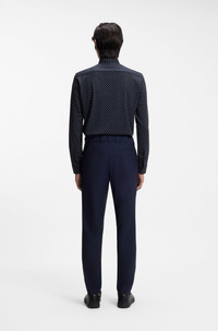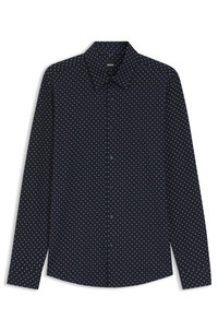 SIZE AND FIT The model wears a size M and is 6'1" tall with a, 34" chest, 30" waist and 36" hips. DETAILS With its clean fit and modern print, this BOSS Menswear shirt will refresh any casual look. Cut in performance-stretch jersey for comfort. Slim fit Kentkragen Round cuffs Standard length P-ROAN-K-F-261 - 50557108 QUALITY & CARE INSTRUCTIONS Dry Clean Only Machine Wash Cold Gentle Iron Low Heat Do Not Tumble Dry Do Not Bleach Material: 75% Cotton, 25% Polyester