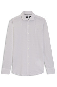 SIZE AND FIT The model wears a size 15.5 and is 6'1" tall with a, 37" chest, 29" waist and 35" hips. DETAILS Offering advanced stretch and moisture management, this BOSS Menswear shirt deftly balances form and function. Clean slim fit with a modern print. Slim fit Spread collar Round cuffs P-HANK-spread-C1-222 - 50550062 QUALITY & CARE INSTRUCTIONS Machine Wash Cold Gentle Dry Clean Only Do Not Bleach Iron Low Heat Material: 87% Polyamide, 13% Elastane Do Not Tumble Dry
