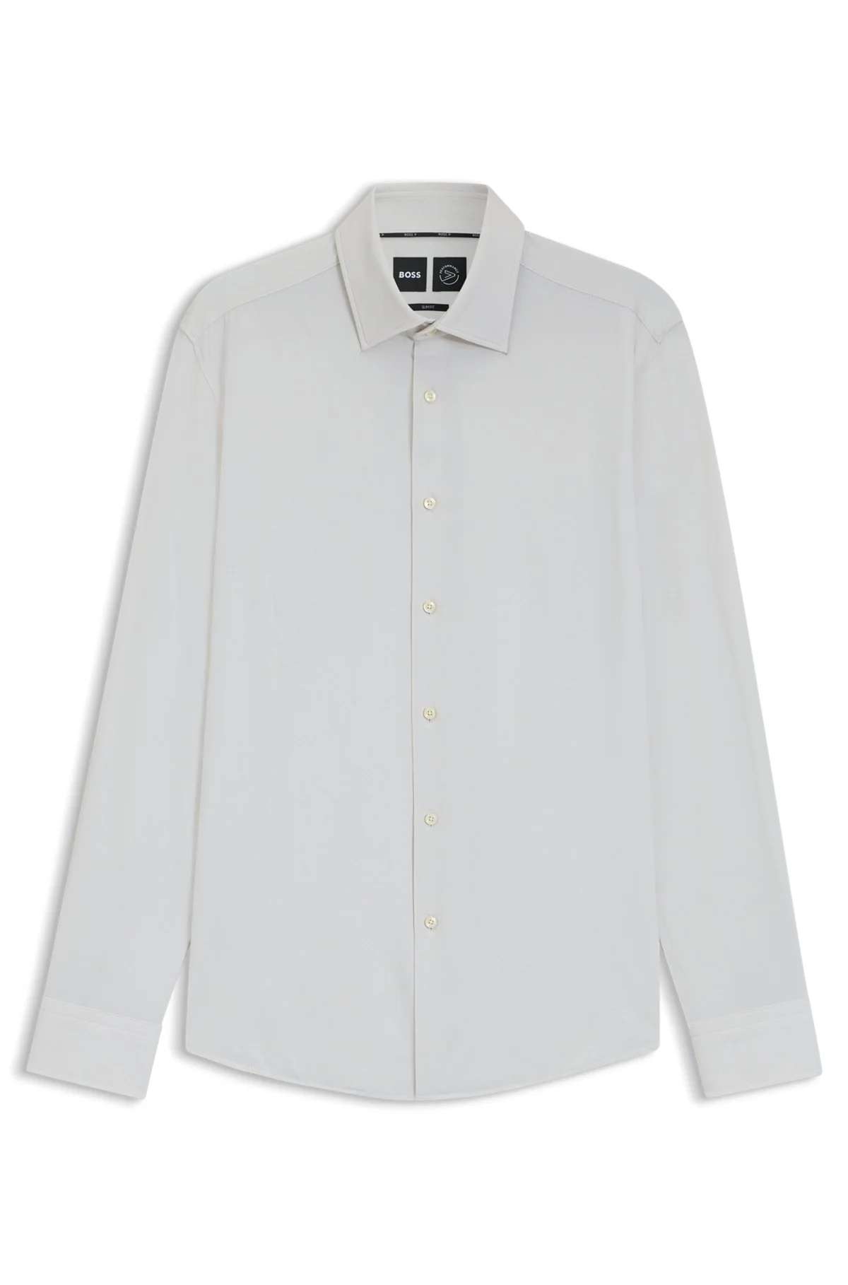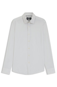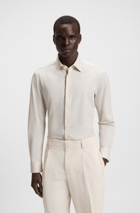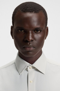 SIZE AND FIT The model wears a size EU:40 and is 6'1" tall with a, 33" chest, 24" waist and 36" hips. DETAILS P-HANK-kent-C1-222 - 50545428 Offering breathable comfort and moisture management, this slim-cut BOSS Menswear shirt is a must on busy days. Performance-stretch fabric with twill print. Slim fit Kentkragen Round cuffs QUALITY & CARE INSTRUCTIONS Quality: 87% Polyamide, 13% Elastane Do Not Tumble Dry Machine Wash Cold Gentle Iron Low Heat Do Not Bleach Dry Clean Only