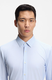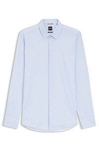 SIZE AND FIT The model wears a size EU:40 and is 6'1" tall with a, 36" chest, 29" waist and 36" hips. DETAILS Update your business collection with the modern print and super-flex jersey of this BOSS Menswear shirt. Tailored to a slim fit. Slim fit Kentkragen Round cuffs P-HANK-S-K-261 - 50556692 QUALITY & CARE INSTRUCTIONS Machine Wash Cold Gentle Do Not Bleach Do Not Tumble Dry Dry Clean Only Iron Low Heat Material: 76% Polyamid, 24% Elastane