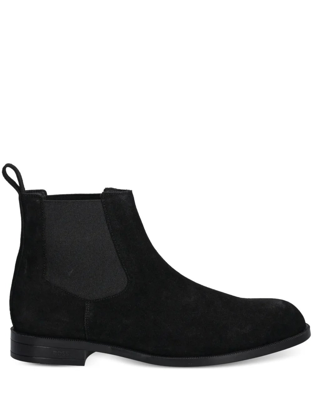 pull-tab Chelsea boots Highlights - Black - Pull-tab - Elasticated side panels - Almond toe - Low heel Imported Composition Outer: Calf Suede 100% Sole: Rubber 100%