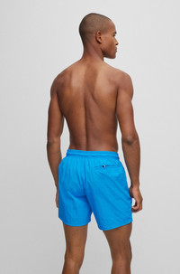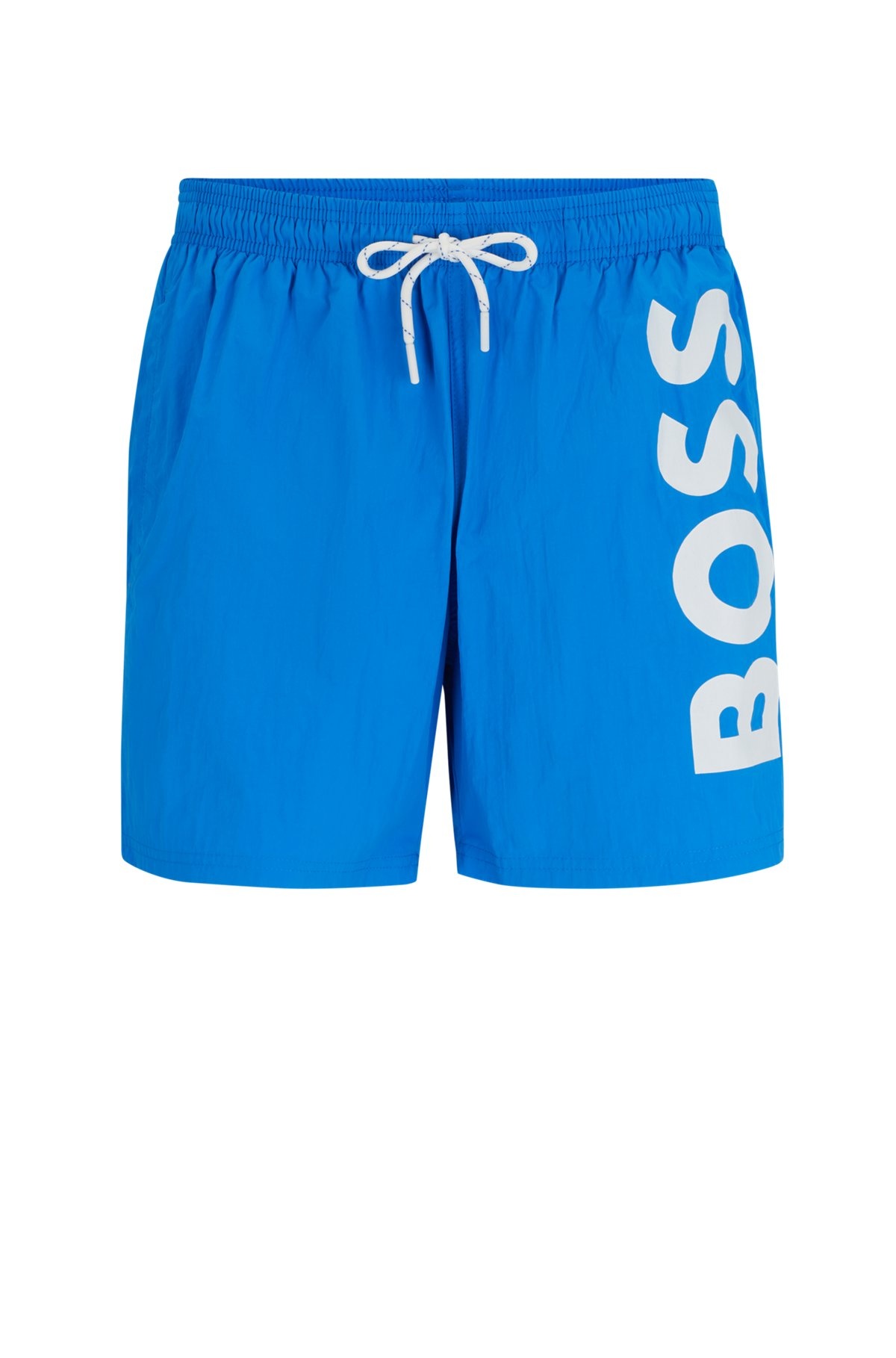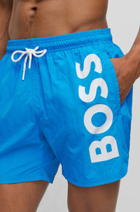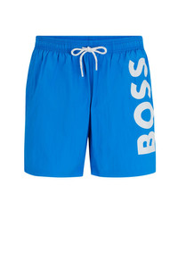 SIZE AND FIT The model wears a size M and is 6'2" tall with a, 38" chest, 29" waist and 36" hips. DETAILS Octopus - 50469594 Fully lined drawstring swim shorts by BOSS in quick-drying material, featuring a large logo print at the left leg. Elastic waistband Drawstring Pockets bottom front: Side pockets Pockets bottom back: Welt pocket Medium length QUALITY & CARE INSTRUCTIONS Quality: 100% Polyamid, Lining: 100% Polyester Do Not Tumble Dry Do Not Bleach Machine Wash Cold Gentle Iron Low Heat Do Not Dry Clean