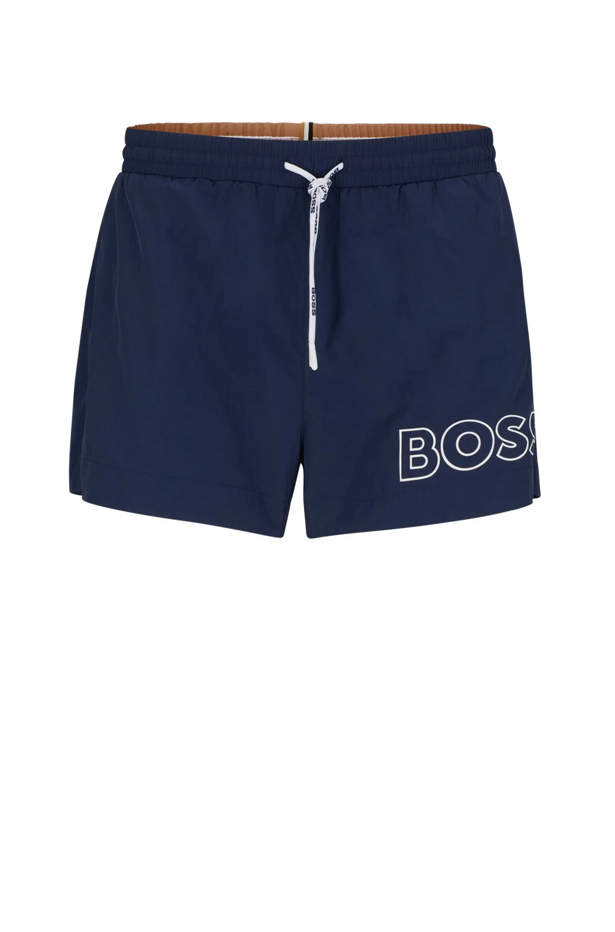 SIZE AND FIT The model wears a size M and is 6'2" tall with a, 38" chest, 31" waist and 37" hips. DETAILS Mooneye - 50469280 Modern swim shorts in quick-drying fabric by BOSS. Fully lined for comfort, these sporty swim shorts are printed with a large BOSS logo in an outline style at the left leg. Plastic-tipped drawcords with further branding complete this pair. Elastic waistband Drawstring Pockets bottom front: Side pockets Short length QUALITY & CARE INSTRUCTIONS Quality: 100% Polyamid, Lining: 100% Polyester Do Not Tumble Dry Machine Wash Cold Do Not Bleach Do Not Iron Do Not Dry Clean