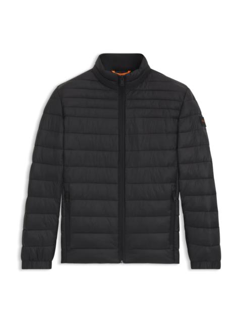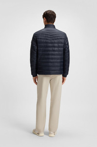 DETAILS Oden2 - 50530822 Packable for protection on the go, this slim-fit BOSS Menswear jacket has a water-repellent finish. Mix of straight and slanted quilting. Slim fit Standard length Fit back length: 70 cm (28 inches) QUALITY & CARE INSTRUCTIONS Quality: 100% Polyamide, Filling: 100% Polyester, lining yoke: 100% Polyester, Body Lining: 100% Polyamid Tumble Dry Low Heat Do Not Dry Clean Machine Wash Cold Gentle Iron Low Heat Do Not Bleach